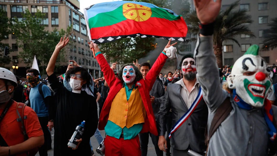 يجد العديد من المحتجين في لبنان وهونغ كونغ والعراق وإسبانيا وتشيلي أن الجوكر رمز لنضالهم ضد الحكومة أو كما يصف رسام الغرافيتي اللبناني محمد “الجوكر هو نحن، وبيروت هي مدينة جوثام الجديدة”.